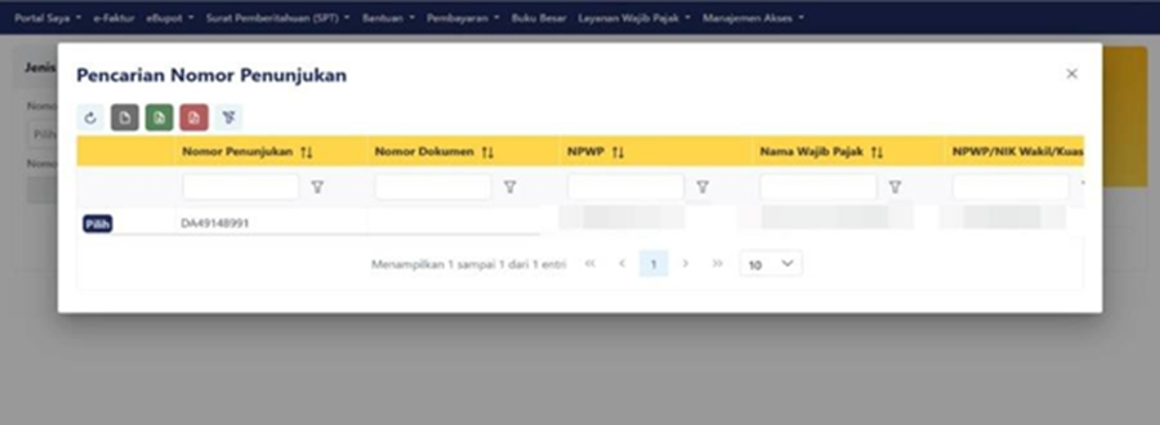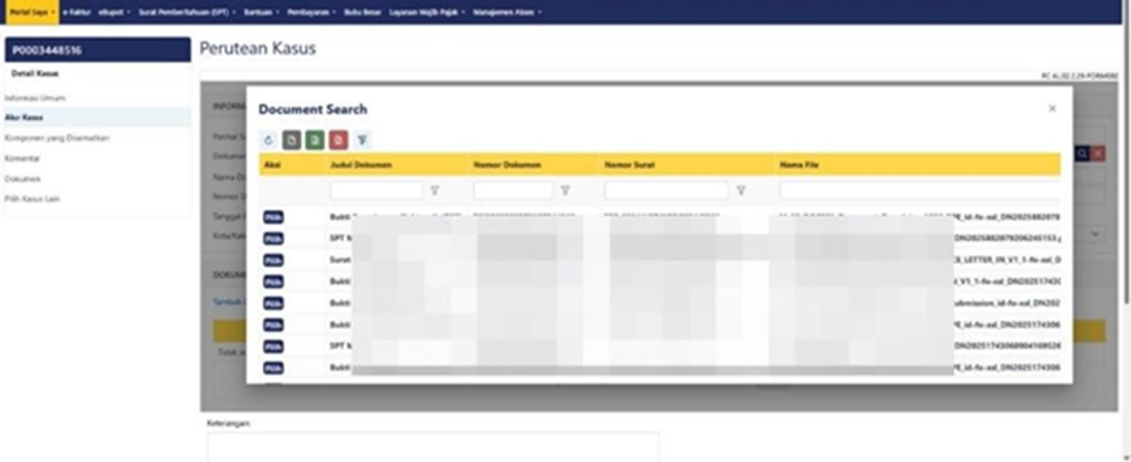 Akan muncul Kotak “Document Search”, pastikan memilih dengan benar atas dokumen SP2DK yang ingin di jawab