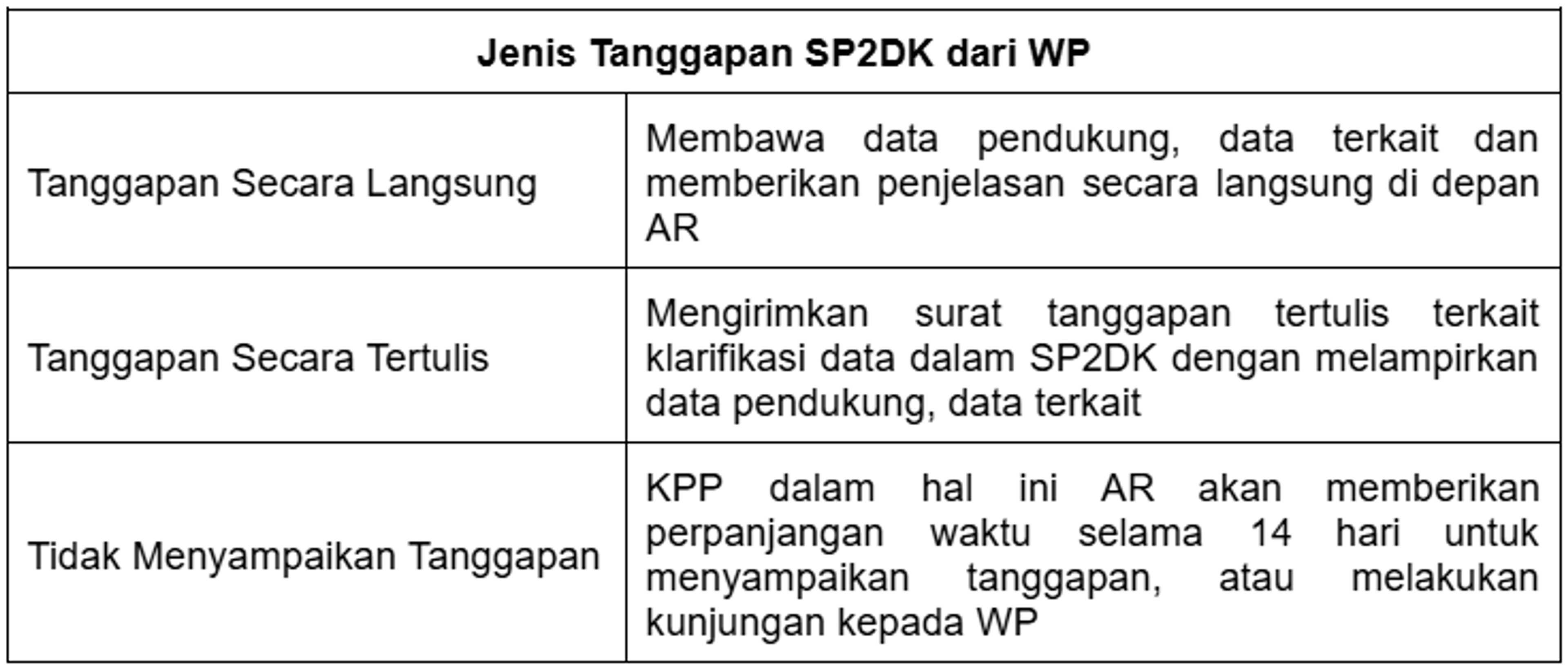 2. SP2DK dikirimkan kepada Wajib Pajak, dengan jangka waktu tanggapan maksimal 14 hari kalender sejak diterima.