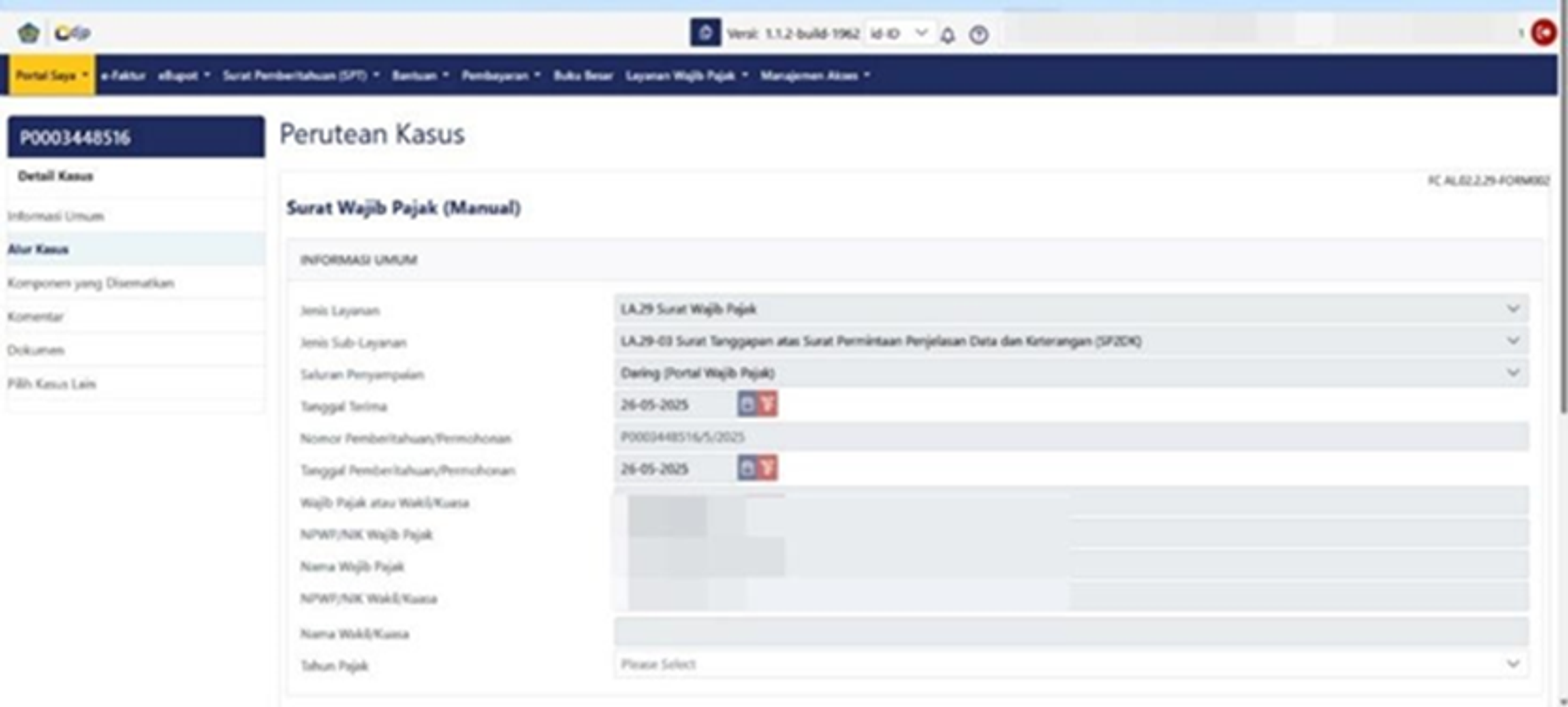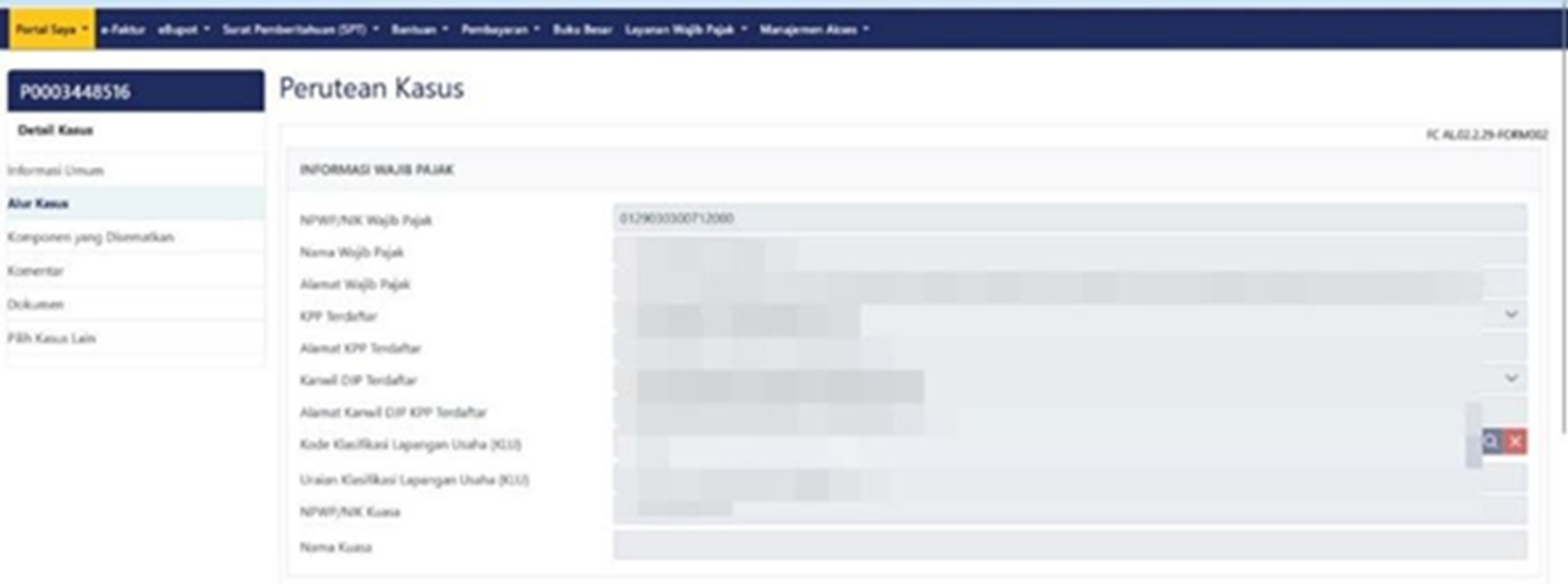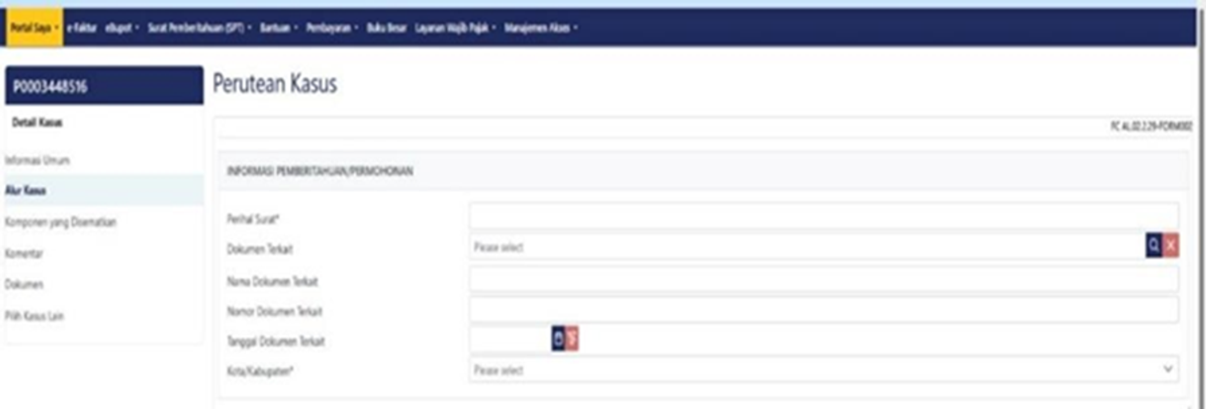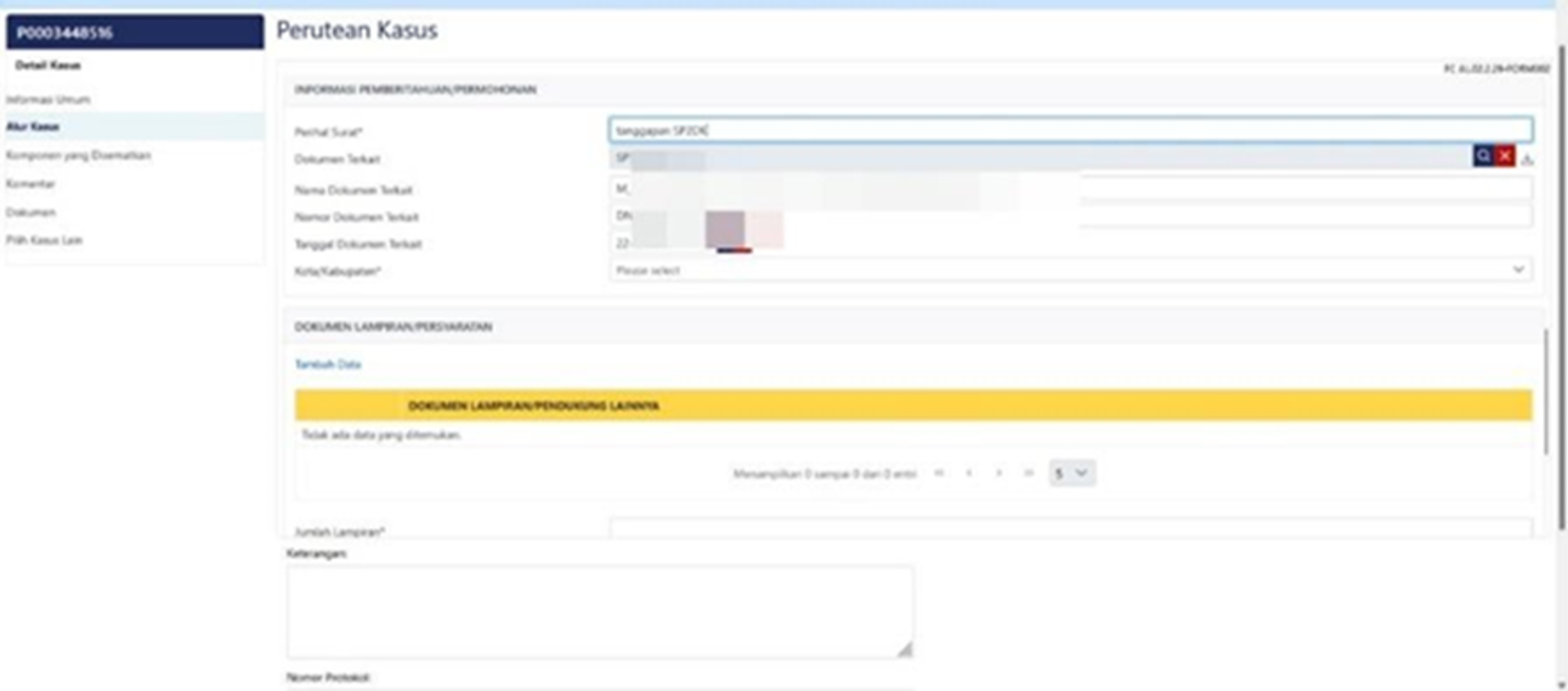 Selanjutnya akan muncul “informasi umum”, lanjutkan dengan klik menu di bawah “informasi umum”, yakni “Alur Kasus”