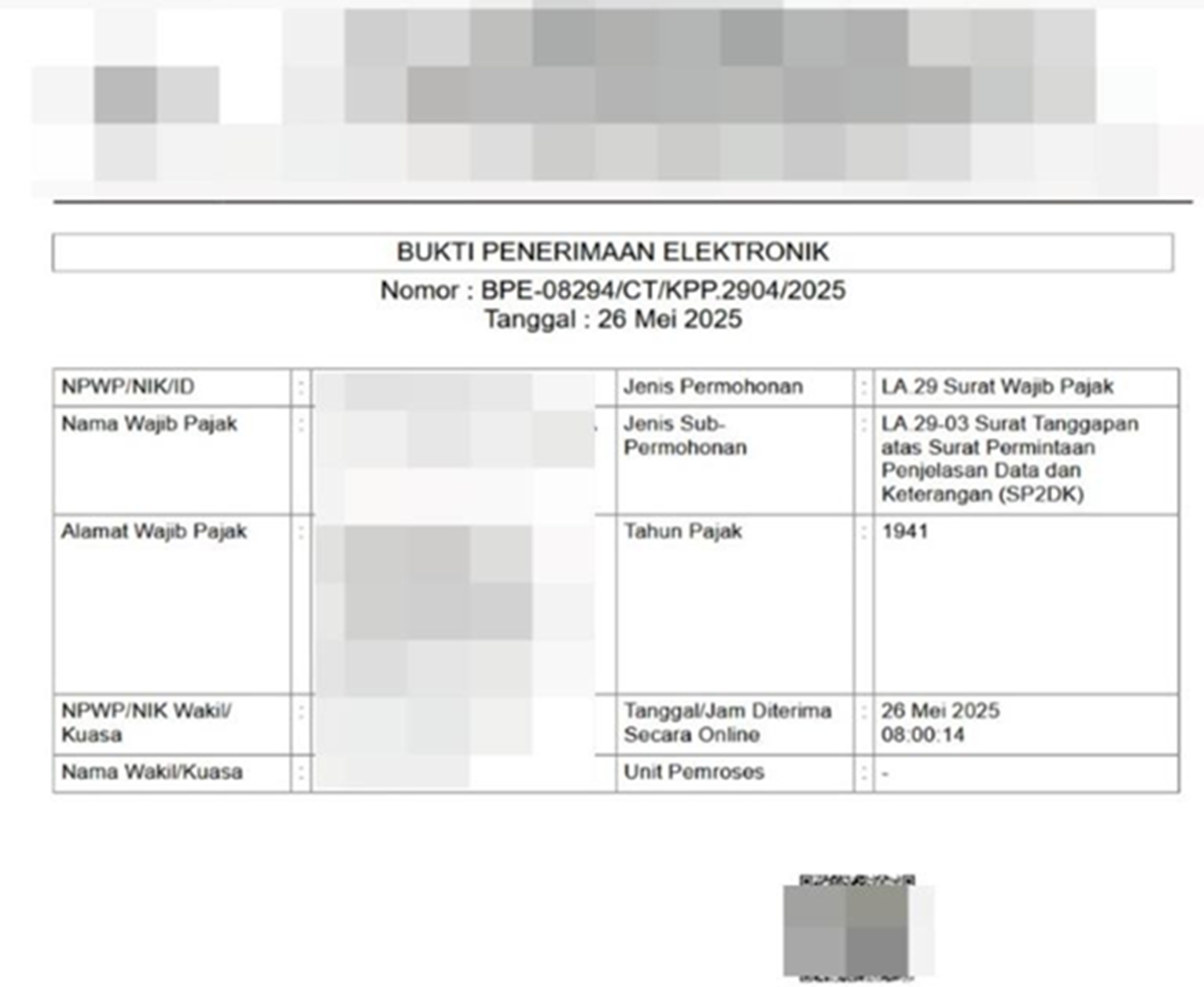 Dengan adanya BPE, maka Jawaban atau Tanggapan atas SP2DK telah resmi dikirimkan kepada KPP terkait.